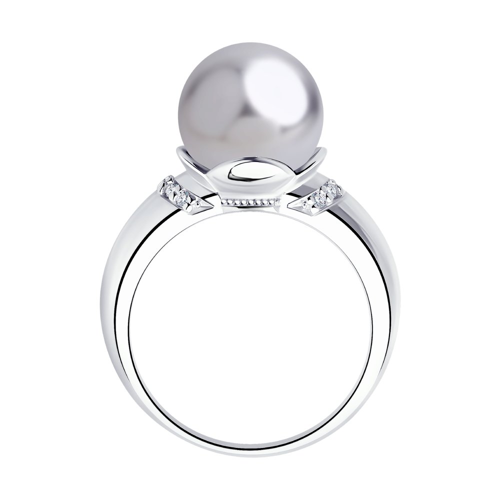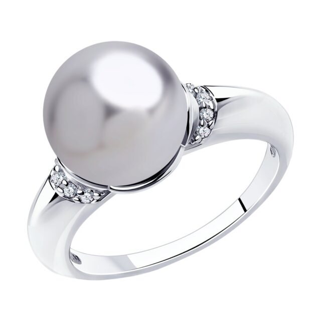 Серебряное кольцо 925 пробы с кристаллами и жемчугом Swarovski