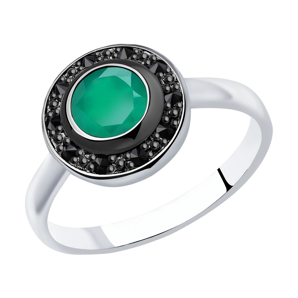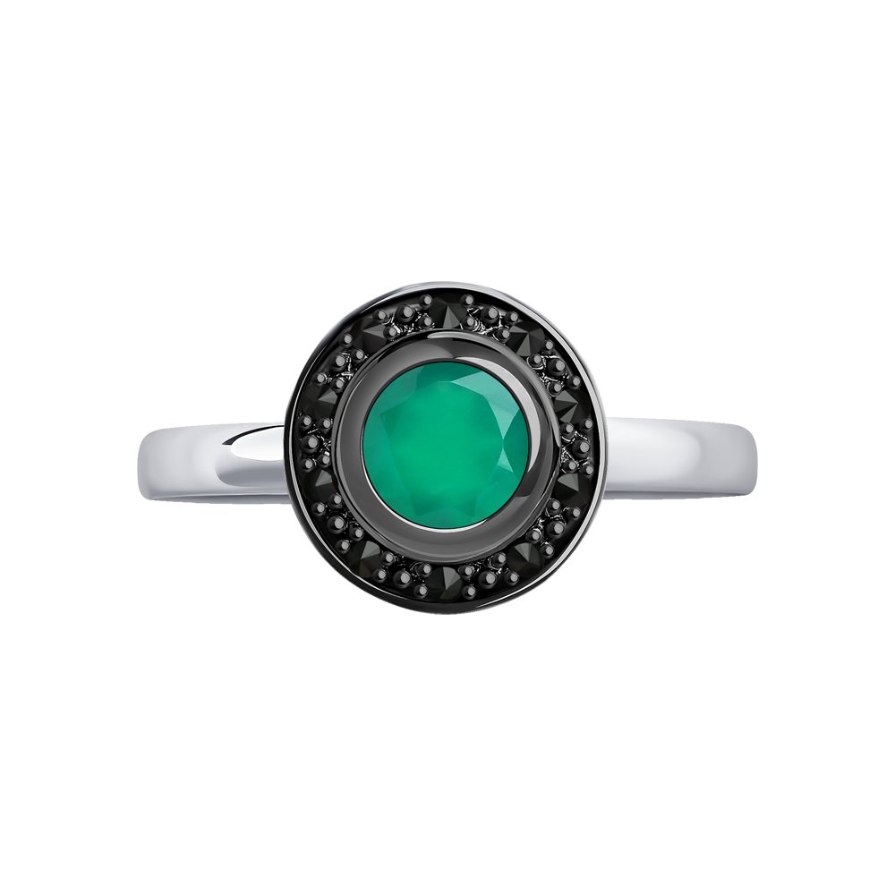 Серебряное кольцо 925 пробы с агатом и фианитами