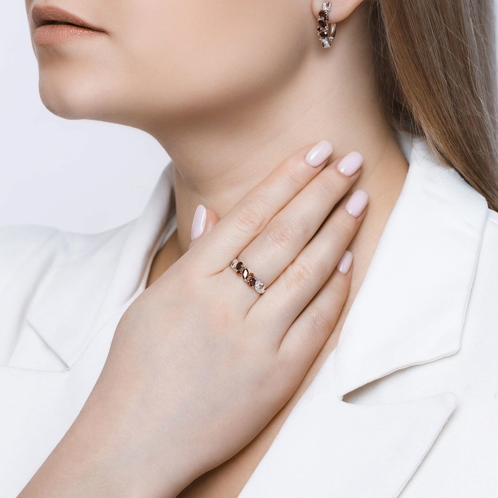 Серебряное кольцо 925 пробы с гранатами и фианитами