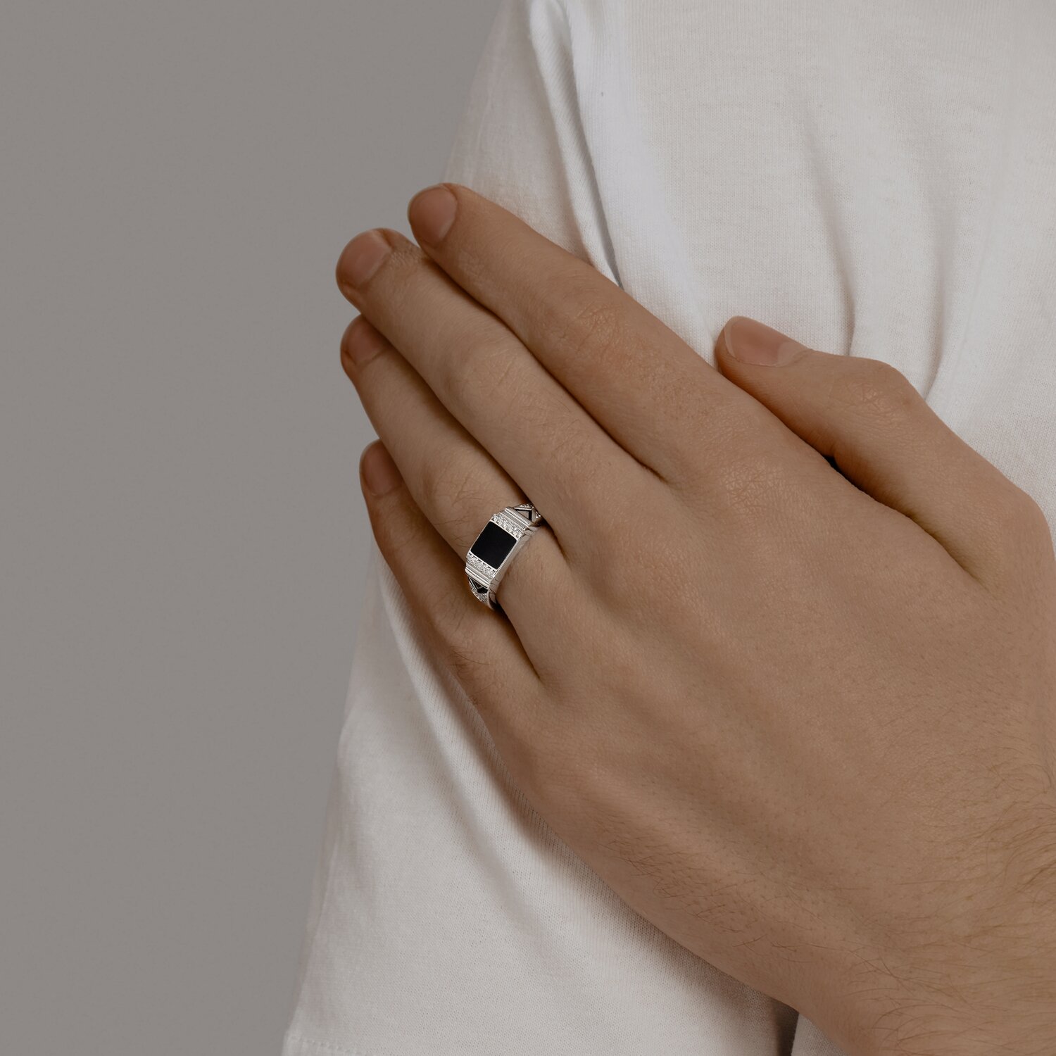 Серебряная печатка 925 пробы c эмалью и фианитами