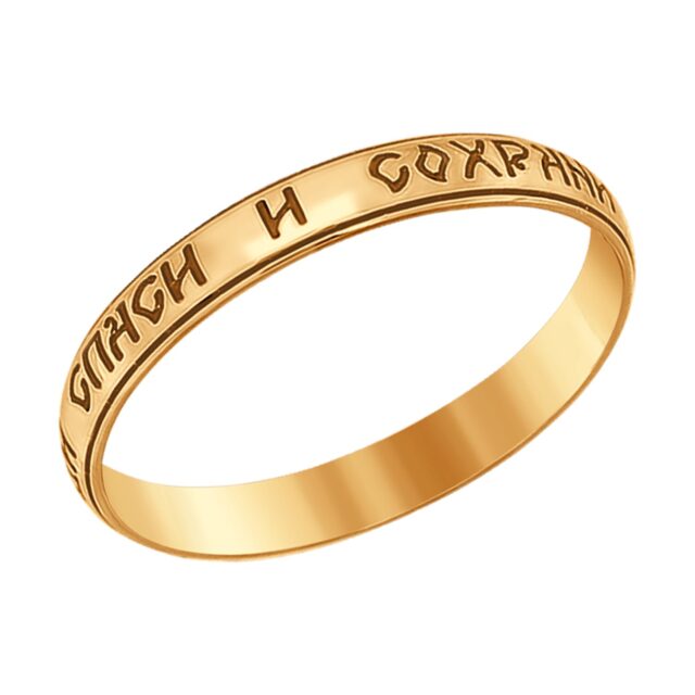 Золотое кольцо 585 пробы "Спаси и Сохрани"