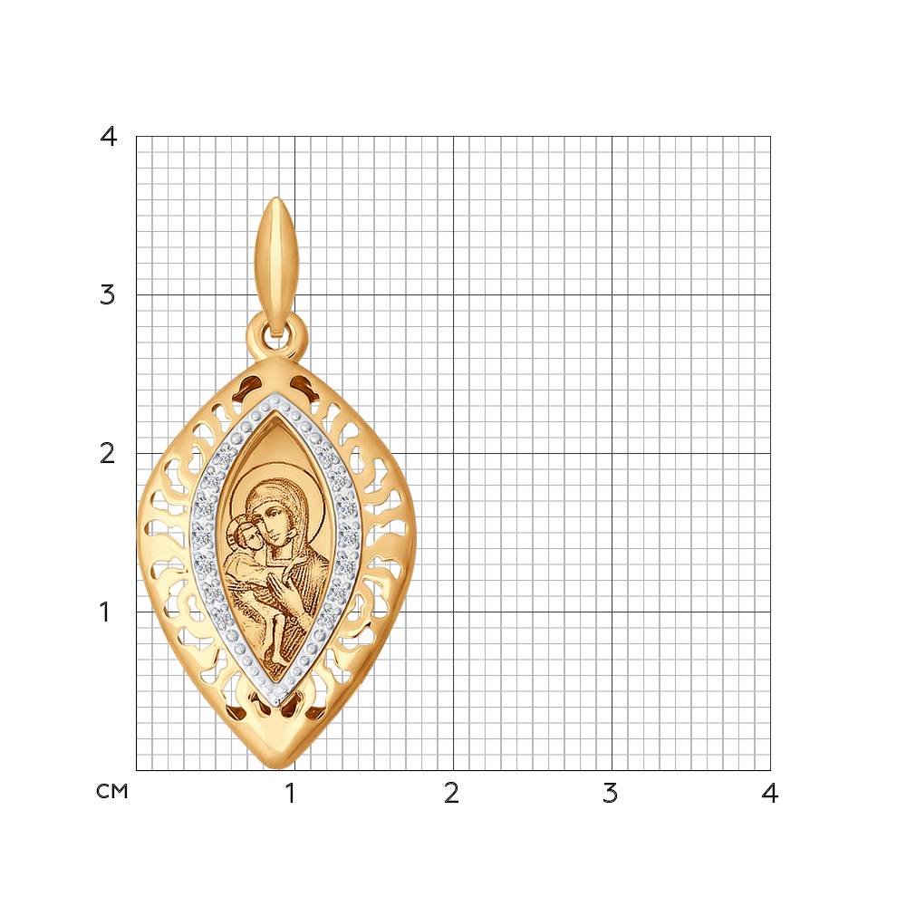 Золотая подвеска 585 пробы "Икона Божьей Матери Костромская-Федоровская"
