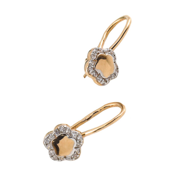 Золотые детские серьги 585 пробы с фианитами